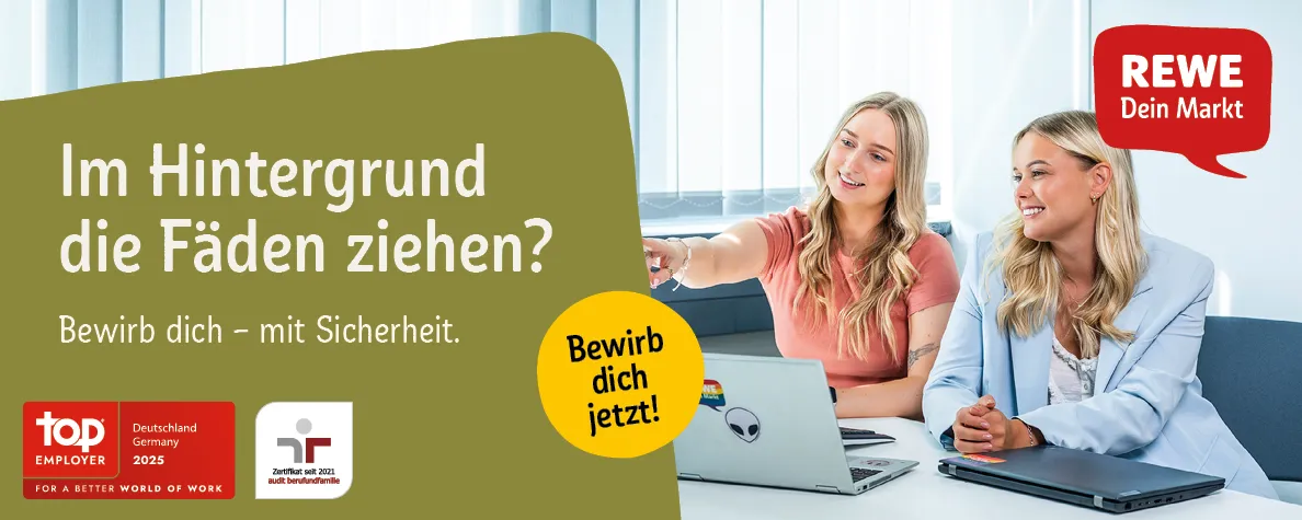 Die REWE Dortmund SE & Co. KG ist ein Gemeinschaftsunternehmen der REWE Dortmund und der REWE Group mit Hauptsitz in Dortmund-Asseln. Das Absatzgebiet der knapp 400 Supermärkte ist Nordrhein-Westfalen – dabei bilden das Ruhrgebiet, der Niederrhein sowie das Sauer- und Münsterland die Schwerpunkte. Betrieben werden die Märkte hauptsächlich von selbstständigen Kaufleuten. Ein besonderes Interesse gilt der Vermarktung von Produkten aus der Region, um die heimische Wirtschaft zu unterstützen, lokale Arbeitsplätze zu sichern und Transportwege möglichst kurz zu halten. Gestalten Sie mit uns Ihre ganz persönliche Karriere. Wir freuen uns auf Sie!
