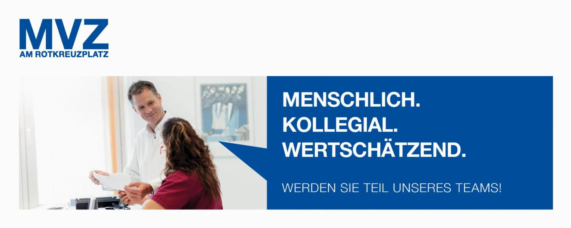 Wir freuen uns auf Ihre vollständige Online-Bewerbung inkl. Lebenslauf, Anschreiben mit Angabe Ihres frühestmöglichen Eintrittstermins und Ihren Zeugnissen. Weitere Informationen erhalten Sie unter www.mvz-am-rotkreuzplatz.de.